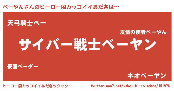 | 男性向けラノベタイトル風あだ名 | 『転生したらベーやんだった件』 |