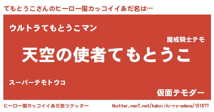 | 伝説のあだ名 | 『救世主となる錬金術士てもとうこ』 |