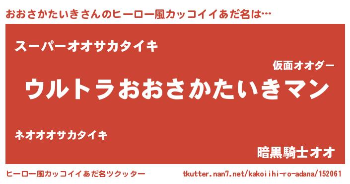 | 男性向けラノベタイトル風あだ名 | 『転生したらおおさかたいきだった件』 |