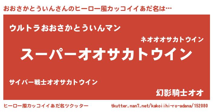 | 男性向けラノベタイトル風あだ名 | 『おおさかとういんの憂鬱』 |