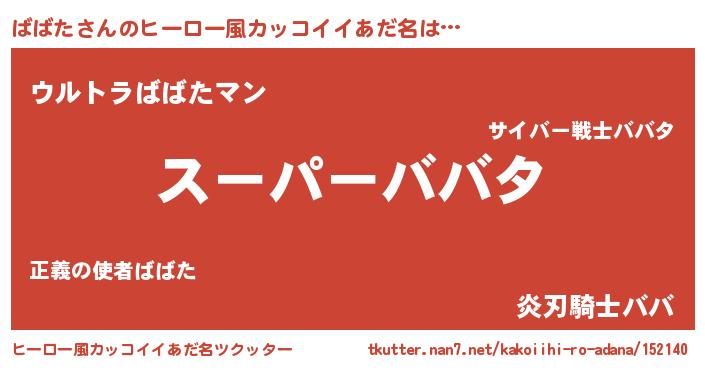 ばばたさんのヒーロー風カッコイイあだ名をツクッター!