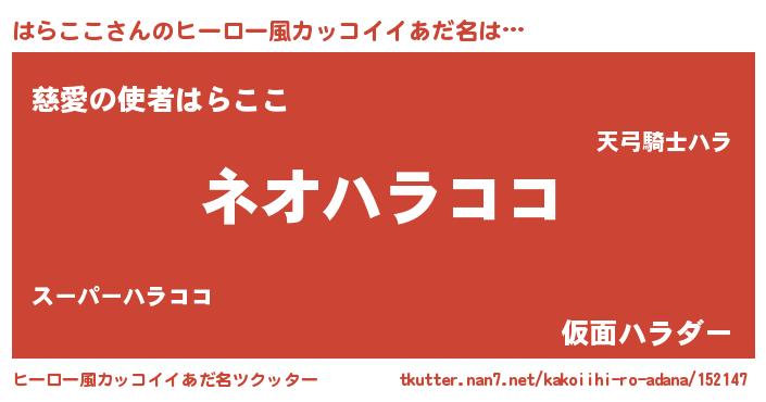 | 男性向けラノベタイトル風あだ名 | 『はらここという概念が存在しない退屈な世界 』 |