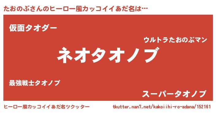 | 男性向けラノベタイトル風あだ名 | 『たおのぶという概念が存在しない退屈な世界 』 |