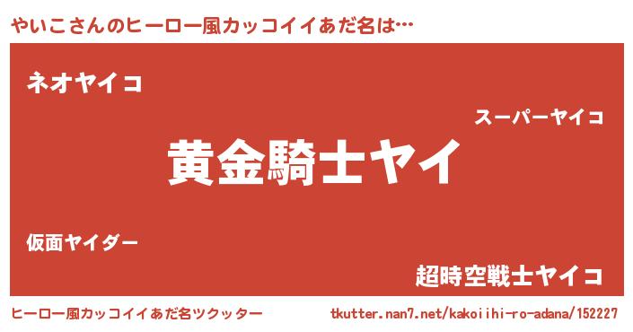 | ヘコむあだ名 | 『やいっちょ』『やいこ(遠い目)』 |