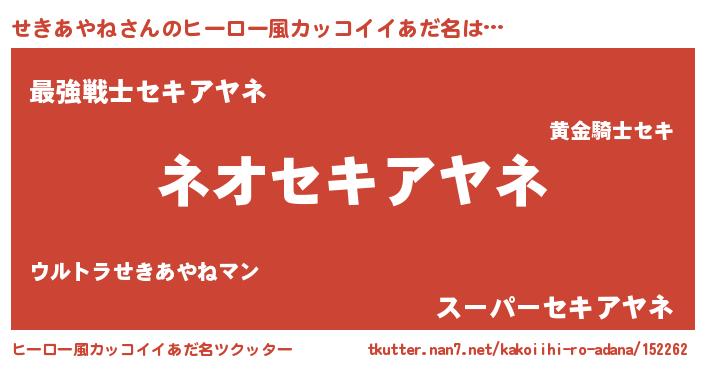 | 意味不明あだ名 | 『永久保存せきあやね』『自称せきあやね』 |