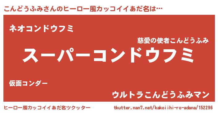 | 胡散臭い通販商品みたいなあだ名 | 『必ず成功する霊験あらたかなお札…その名も「こんどうふみ」』 |