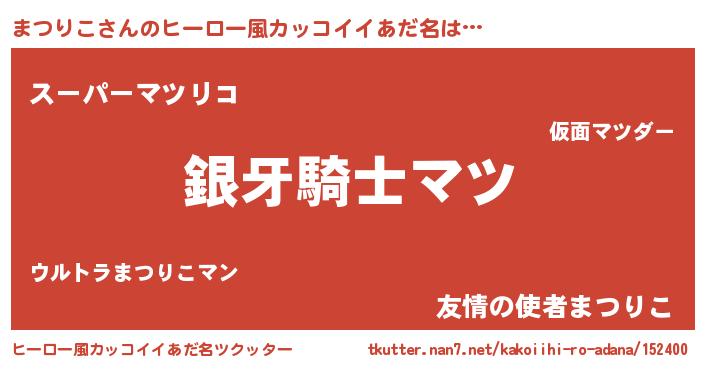 | 女子向けラノベタイトル風あだ名 | 『まつりこの卵を拾いまして』 |