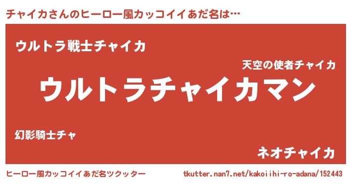 | 男性向けラノベタイトル風あだ名 | 『うちのチャイカが世界を掌握している!』 |
