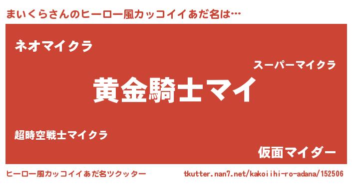 | 胡散臭い通販商品みたいなあだ名 | 『信頼と実績のサプリメント…その名も「まいくら」』 |