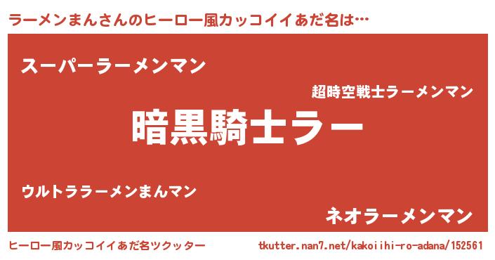 | 男性向けラノベタイトル風あだ名 | 『ダンジョンにラーメンまんを求めるのは間違っているだろうか』 |