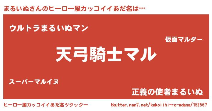 | 男性向けラノベタイトル風あだ名 | 『まるいぬの嫁は女の子じゃないと思った?』 |
