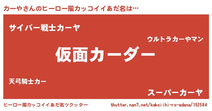 | 男性向けラノベタイトル風あだ名 | 『この素晴らしい世界にカーやを!』 |