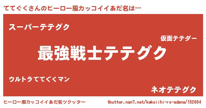 | 男性向けラノベタイトル風あだ名 | 『Re:ててぐくから始める異世界生活』 |