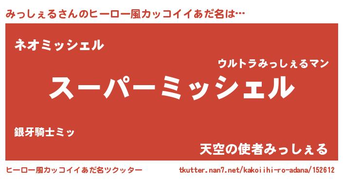 | 胡散臭い通販商品みたいなあだ名 | 『モテモテ間違いなしブレスレット…その名も「みっしぇる」』 |