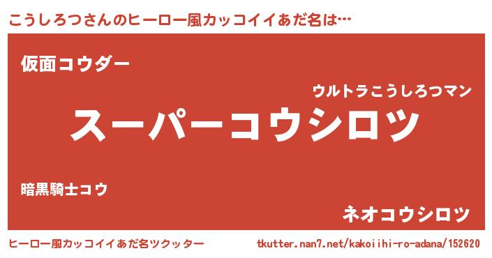 | 男性向けラノベタイトル風あだ名 | 『コウシロツアートオンライン』 |