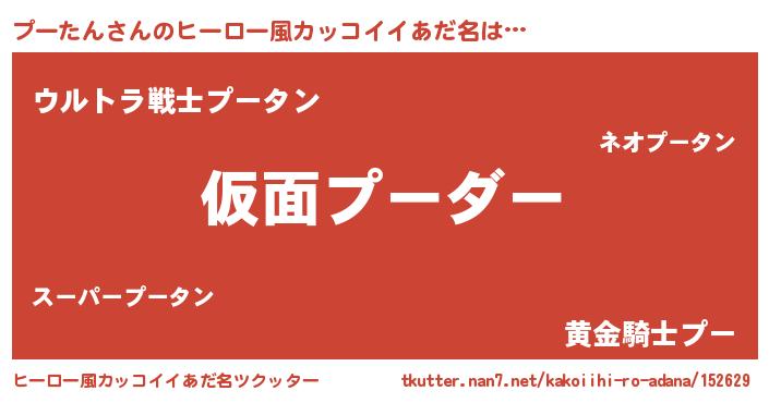 | 男性向けラノベタイトル風あだ名 | 『この素晴らしい世界にプーたんを!』 |