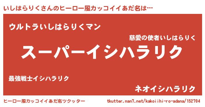 | 胡散臭い通販商品みたいなあだ名 | 『億万長者になれるブレスレット…その名も「いしはらりく」』 |