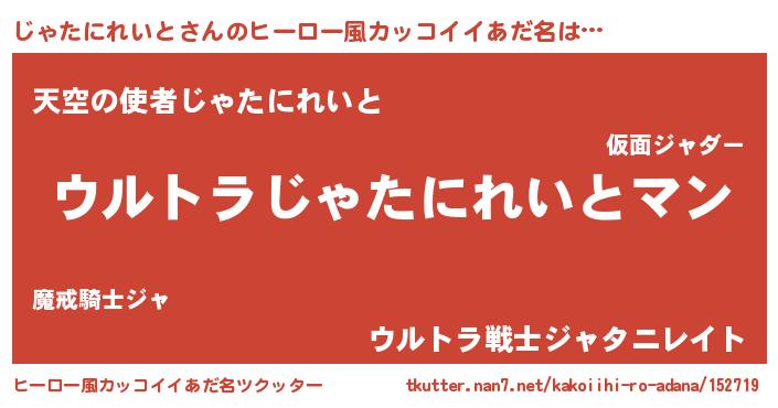 | 肩書あだ名 | 『じゃたにれいと上級大将』 |