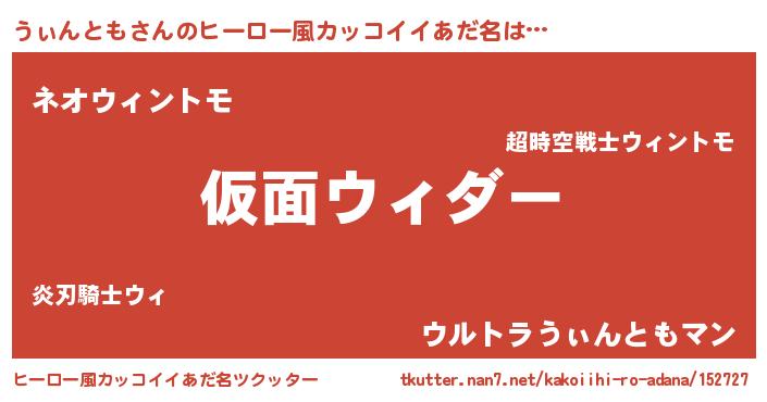 | 男性向けラノベタイトル風あだ名 | 『この素晴らしい世界にうぃんともを!』 |