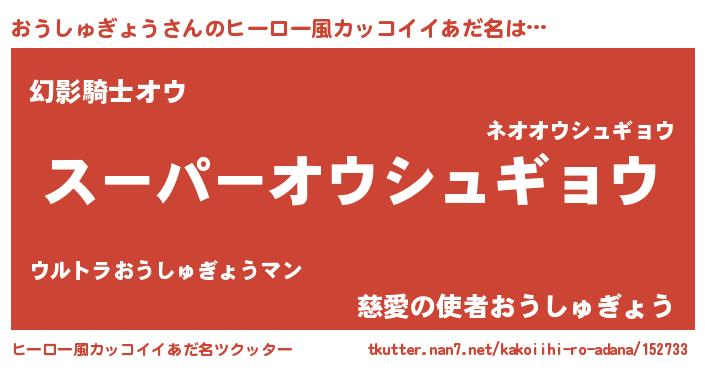 | 胡散臭い通販商品みたいなあだ名 | 『億万長者になれるブレスレット…その名も「おうしゅぎょう」』 |