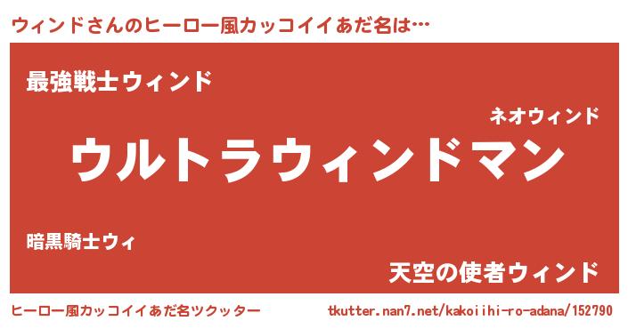 | 女子向けラノベタイトル風あだ名 | 『ウィンドの玉の輿計画!』 |