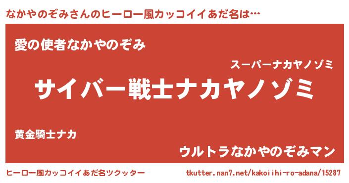 | 男性向けラノベタイトル風あだ名 | 『なかやのぞみに滅ぼされるだけの簡単なお仕事です』 |
