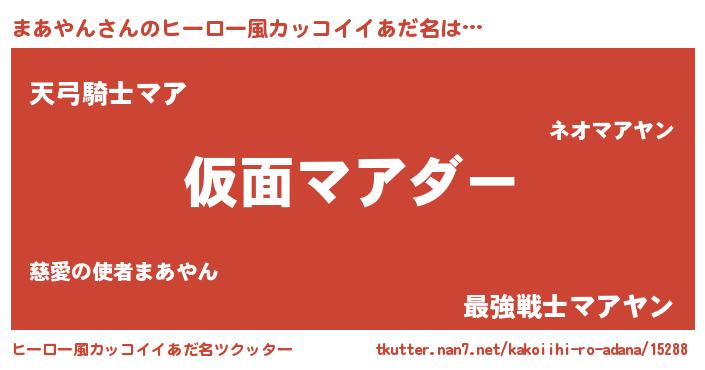 | 女子向けラノベタイトル風あだ名 | 『乙女ゲームの破滅フラグしかない悪役まあやんに転生してしまった…』 |