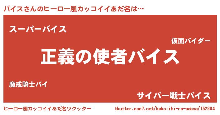 | 男性向けラノベタイトル風あだ名 | 『おまえをオタクにしてやるから、俺をバイスにしてくれ! 』 |