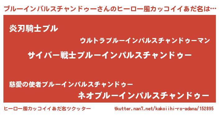 | 女子向けラノベタイトル風あだ名 | 『ブルーインパルスチャンドゥーアンティーク』 |