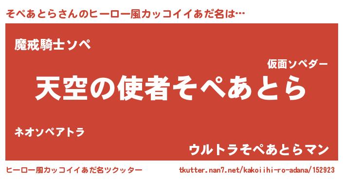 | ヘコむあだ名 | 『そぺを』『豆乳』『そぺっふぃ~』 |