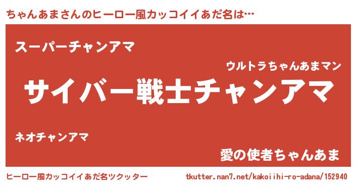 | 女子向けラノベタイトル風あだ名 | 『闇のちゃんあま』『ちゃんあま恋絵巻』 |