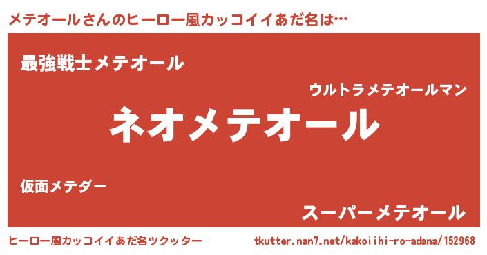 | 意味不明あだ名 | 『永久保存メテオール』『自称メテオール』 |