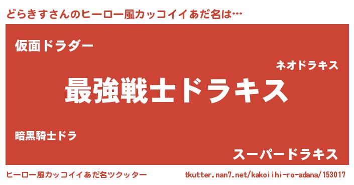 | 男性向けラノベタイトル風あだ名 | 『Re:どらきすから始める異世界生活』 |