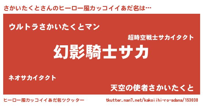 | 男性向けラノベタイトル風あだ名 | 『さかいたくとの嫁は女の子じゃないと思った?』 |