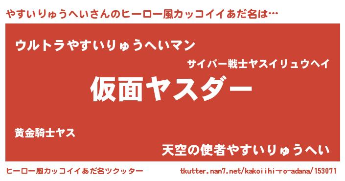| 胡散臭い通販商品みたいなあだ名 | 『世界中を虜にした世界で10本だけ現存している希少なブランデー…その名も「やすいりゅうへい」』 |