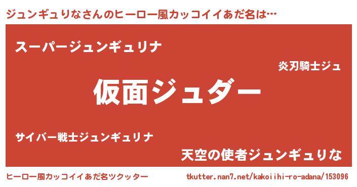 | 女子向けラノベタイトル風あだ名 | 『乙女ゲームの破滅フラグしかない悪役ジュンギュりなに転生してしまった…』 |