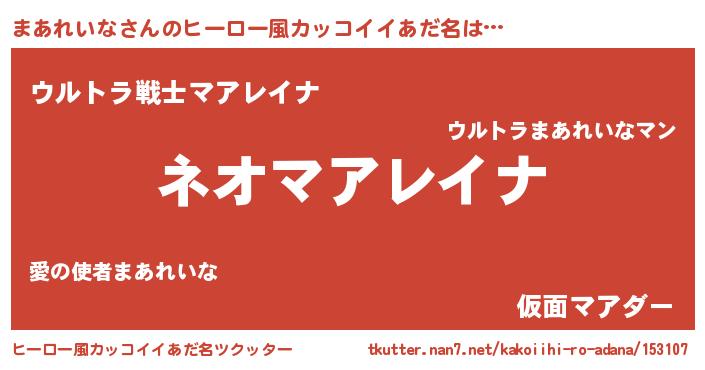 | 男性向けラノベタイトル風あだ名 | 『まあれいなに滅ぼされるだけの簡単なお仕事です』 |