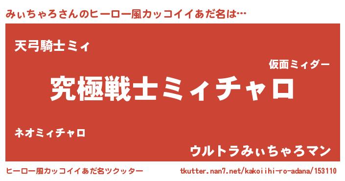 | 男性向けラノベタイトル風あだ名 | 『Re:みぃちゃろから始める異世界生活』 |