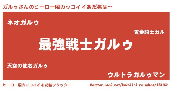 | 意味不明あだ名 | 『自称ガルゥ』『永久保存ガルゥ』 |