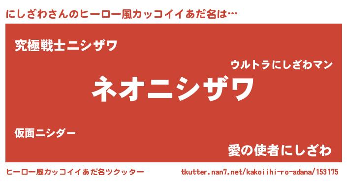 | 意味不明あだ名 | 『永久保存にしざわ』『自称にしざわ』 |