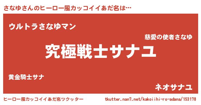 | 男性向けラノベタイトル風あだ名 | 『Re:さなゆから始める異世界生活』 |