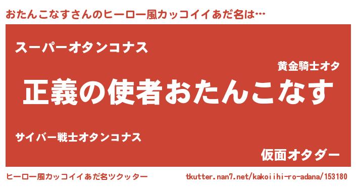 | 男性向けラノベタイトル風あだ名 | 『おまえをオタクにしてやるから、俺をおたんこなすにしてくれ! 』 |