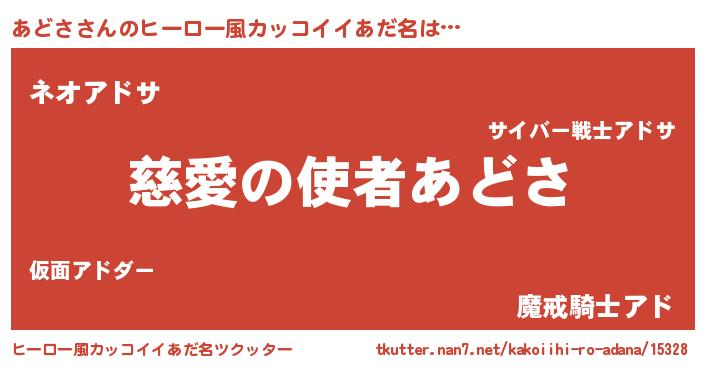 | 女子向けラノベタイトル風あだ名 | 『死神あどさの再婚』『あどさの契約王妃』 |