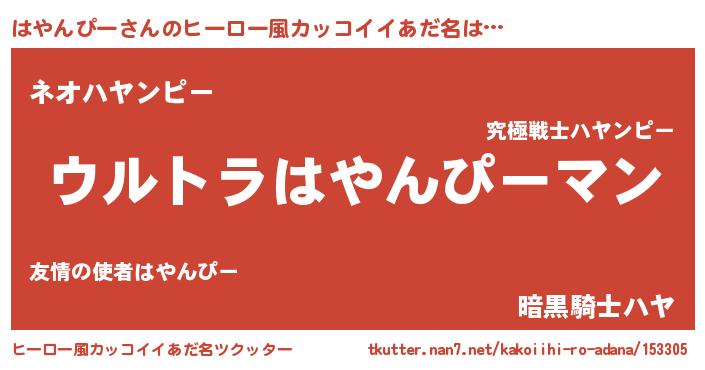 | 欧米人風あだ名 | 『はやんぴークリステル』 |