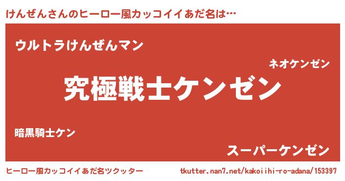 | 男性向けラノベタイトル風あだ名 | 『Re:けんぜんから始める異世界生活』 |