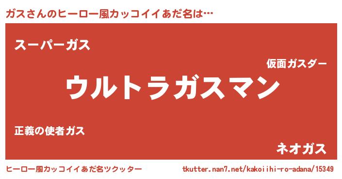 | 男性向けラノベタイトル風あだ名 | 『ガス~年齢イコール彼女いない歴の魔法使い~』 |