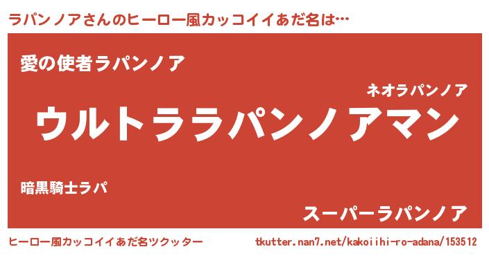 | 伝説のあだ名 | 『秘められし忍者ラパンノア』 |