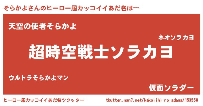 | 女子向けラノベタイトル風あだ名 | 『そらかよなんてお断りですっ。』 |