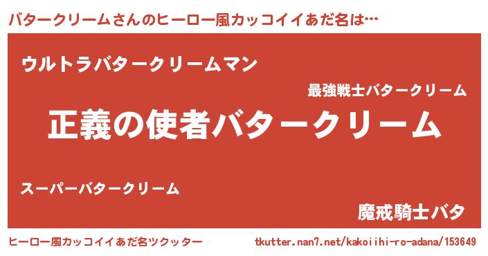 | 男性向けラノベタイトル風あだ名 | 『はたらくバタークリームさま!』 |