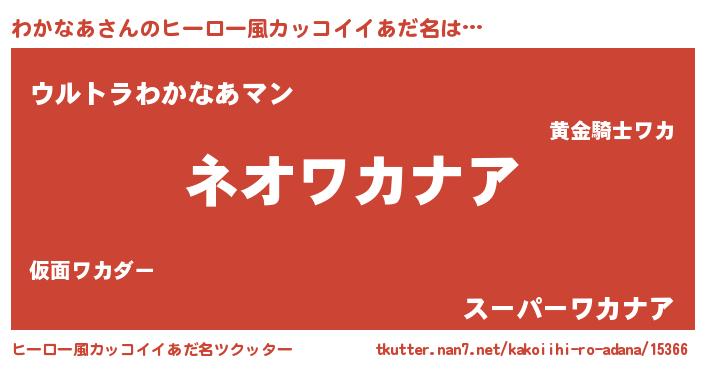 | 男性向けラノベタイトル風あだ名 | 『わかなあに滅ぼされるだけの簡単なお仕事です』 |
